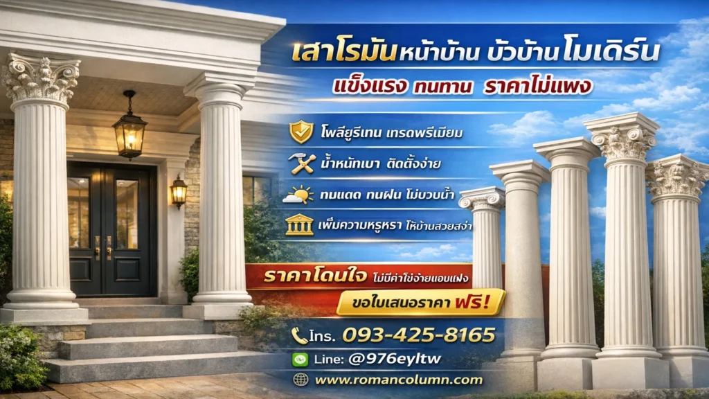 – เสาโรมันหน้าบ้าน ราคาไม่แพง พูดคุยตกลงรายละเอียดเพื่อประเมินงบของคุณก่อนได้เลย ไม่ต้องกังวลใจ